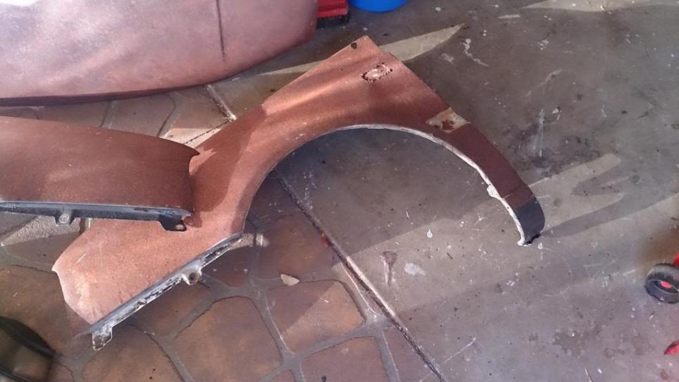 Rusted front guards. Left one had indicator hole welded up...
