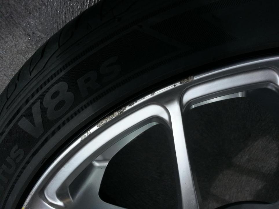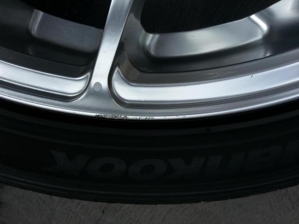 Minor curb rash on 3 of the rims but the wheel faces are fine except #4 has a very small chip, see photo below.