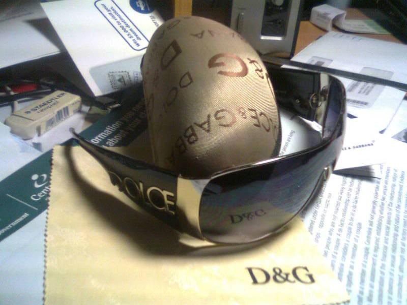 They come in a Dolce & Gabbana case cleaning cloth also imprinted with D & G. The sunglasses have Dolce written on one side and Gabbana on the other side and look exactly like the real ones. even got a tag..