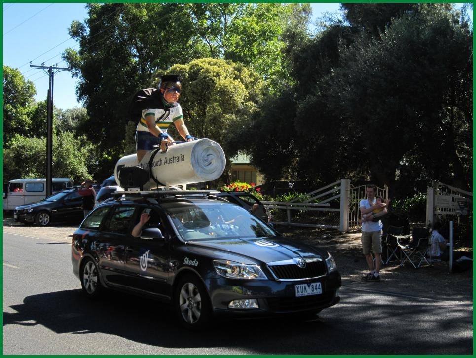 I just got back from SA - I was down relaxing at Goolwa/Victor Harbour for the week with the wife & her family, had the mountain bike with me and thought about heading up to do the Twitter ride with Lance ( for a **** stir amongst the roadies ) , but the surf was good that morning and riding with 10,000 other riders was a bit much for me. I was back in Adelaide yesterday but it was the TDU rest day and i was heading back to the east coast .