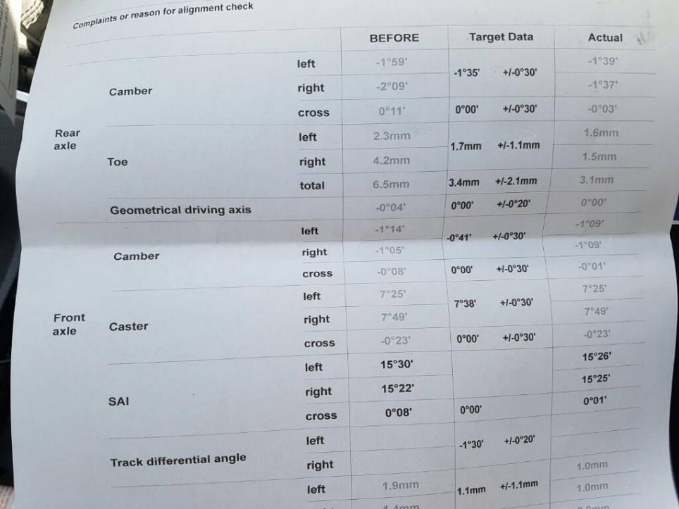 I noticed that my MkV GTI tyres have worn completely on the inside of one rear tyre (passenger). The drivers side isn't that bad but inner wear is worst than outside.