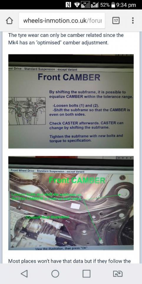 I have since read that the front and rear subframes need to be aligned correctly to even out the camber, castor and toe (rear).