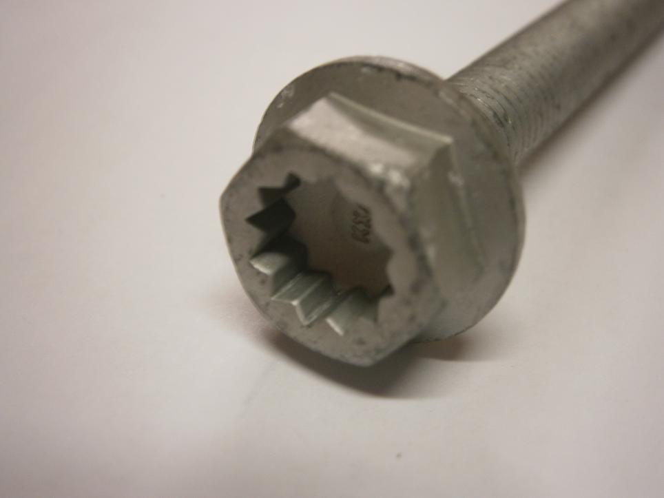 As I have said in another thread, I am in the process of a timing belt change in a Golf BKD engine. When I bought the stretch bolts there are 2 that have a special head. It's a combination of external hex. head & internal XZN/multispline/triple square. These 2 bolts secure an aluminium block to the end of the engine block. The frame mounted engine mount is then fixed to the top of this block. Because the screws are difficult to undo & then to tighten I think these special heads have been tried. The originals are hex. head with a flange.