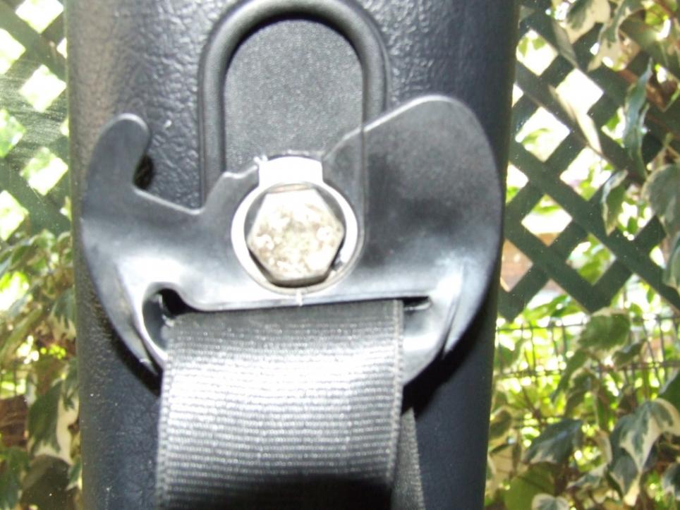 Here is the stock cabrio drivers seat belt and it has a plastic cover which covers the bolt