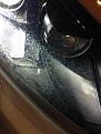 Mostly noticeable during night when headlights are on, you can see some stains on the headlights. I know it's not on the inside because I can temporarily remove it with my finger only to re-appear moments later. It looks like some over spray from the headlight washers although I seriously doubt it could have stained from that. Also, it is mostly concentrated toward the middle of the car and it gets less obvious towards the sides.