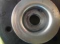 The front shock feels fine, but there is strange wear on the top mount. See the attached photos.