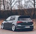 Here is 19 x 8 with effective offset around ET34 (f) and ET30 (r) with spacers so flush is achievable on Golfs. I don't recall what this guy runs suspension wise.
