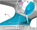 - Remove the right side C-pillar trim to allow the roof liner on this side to be pulled down further for cable routing. There are four clips holding the C-pillar trim, shown as items 2 in the image below