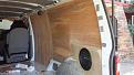 Its amazing how much sound deadener you can stuff into the walls and doors etc of a van , so far over 24 square metres and still a bit more to go , roof now done / side door and tailgate plus all the sides and window spaces . I have run all the speaker wiring and amp wiring etc from the head unit to the amp under the drivers seat . Refitting the original side trims in readiness for then cutting and customising ply walls as customer wants clean floor to ceiling look , a whopping 12 inch Subwoofer is being built into the rear corner in a custom built MDF enclosure . I used lots of a special packing foam to fill out some sections as it cuts down any chance of any rattles and helps absorb any noise transfer . Sorry about the two blurry shots .